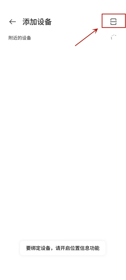 4、填写完毕后,请开启位置信息和蓝牙功能,这样可以更快找到周围设备。点击指定设备进行连接,您也可以选择扫码连接。