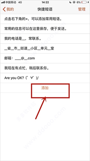 4、在快捷短语页面,点击下方的“添加”按钮。