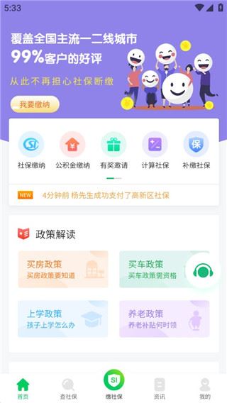 订单状态通过短信及时提醒,让缴纳社保更省心;