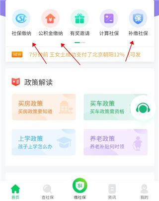 2、在首页,用户可以看到社保缴纳和公积金缴纳的相关服务,点击即可办理。