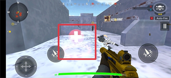 2、进入游戏后,使用左下角的轮盘控制角色移动,右边是射击按钮。
