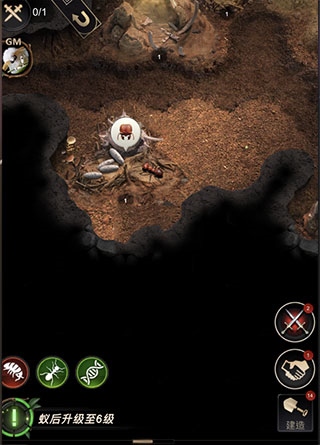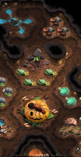 如果在没有升级的情况下,玩家已经挖掘得满是乱七八糟,无法记住各建筑的位置,点击蚁后即可查看蚁巢布局,观察升级后的区域和布局,点击应用后,蚁巢将整齐美观。