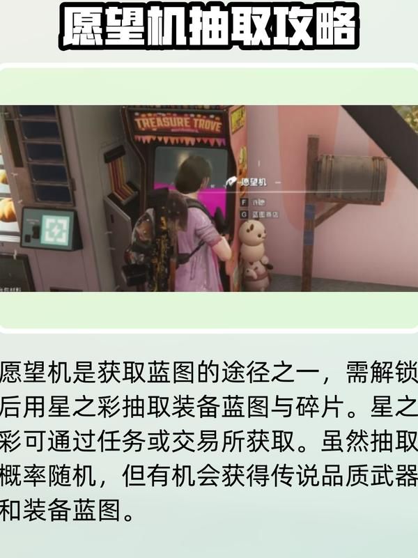 除了死磕据点,其他路子也能弄到碎片。地图上散落的聚落里基本都有个神秘宝藏点,里面战利品箱子有概率开出来蓝图或者碎片,路过的时候顺手清了。模因系统里解锁装备制造台那条线,一路点下去也能白嫖到一些蓝图。愿望机这玩意儿得做完主线解锁,用星之彩抽,有机会抽到蓝图或碎片,星之彩靠做赛季目标、净化回响这些游戏内活动攒,没法氪金买。多留意这些途径,别光盯着据点。
